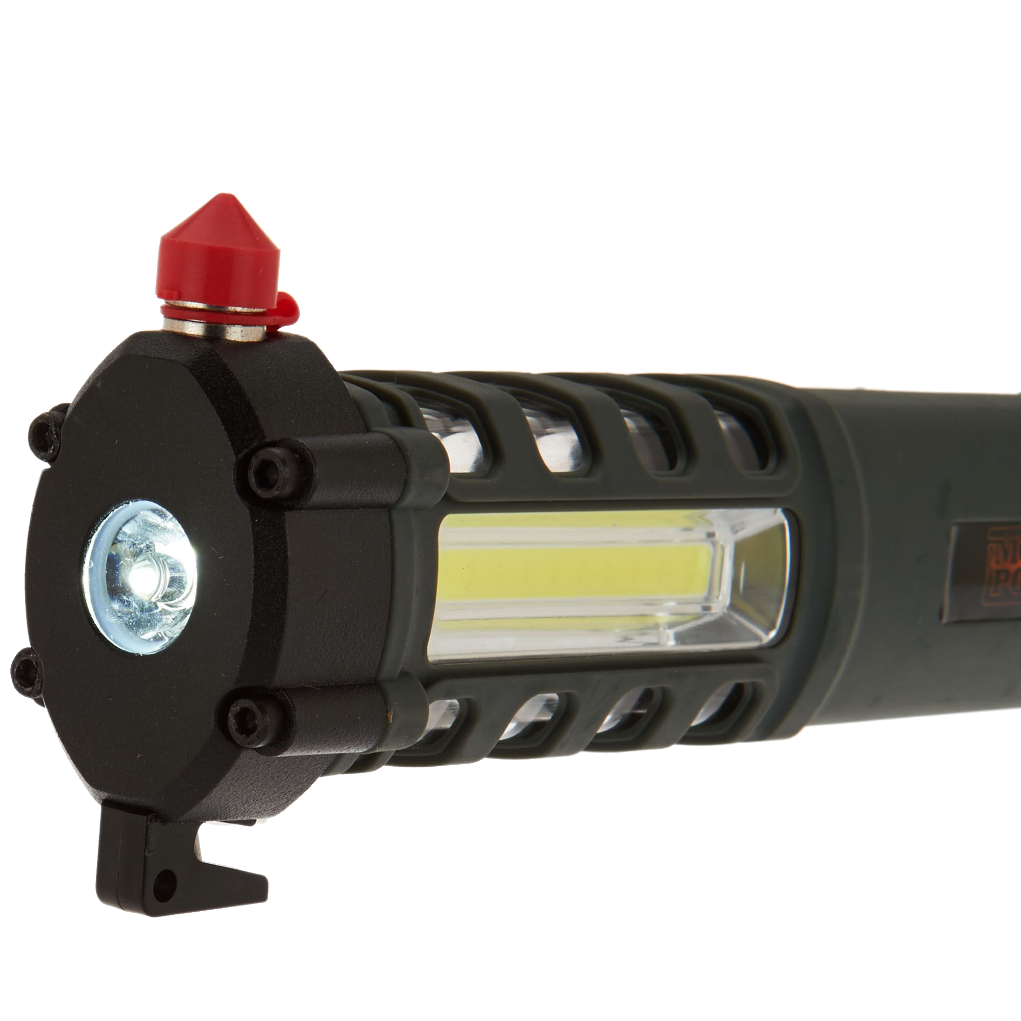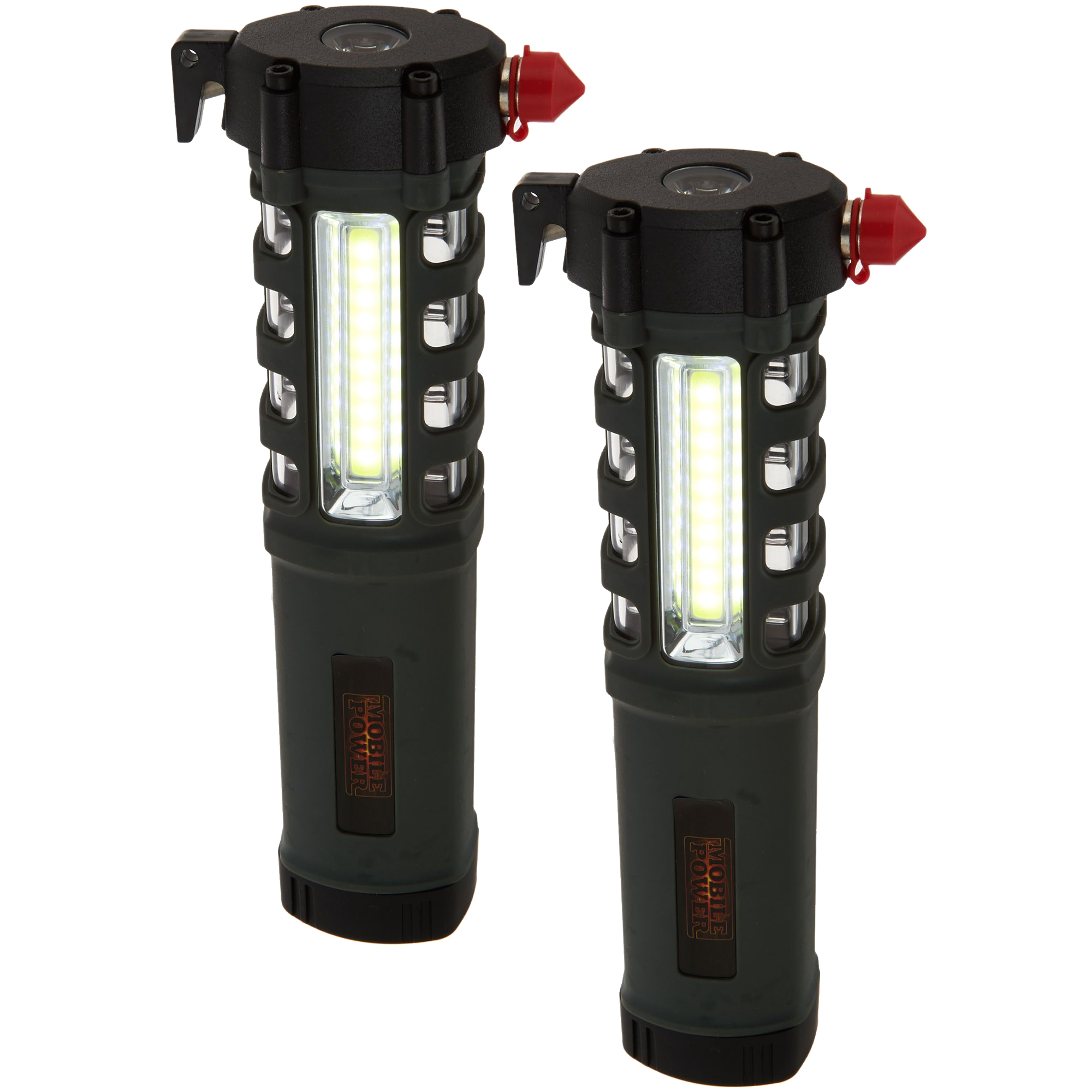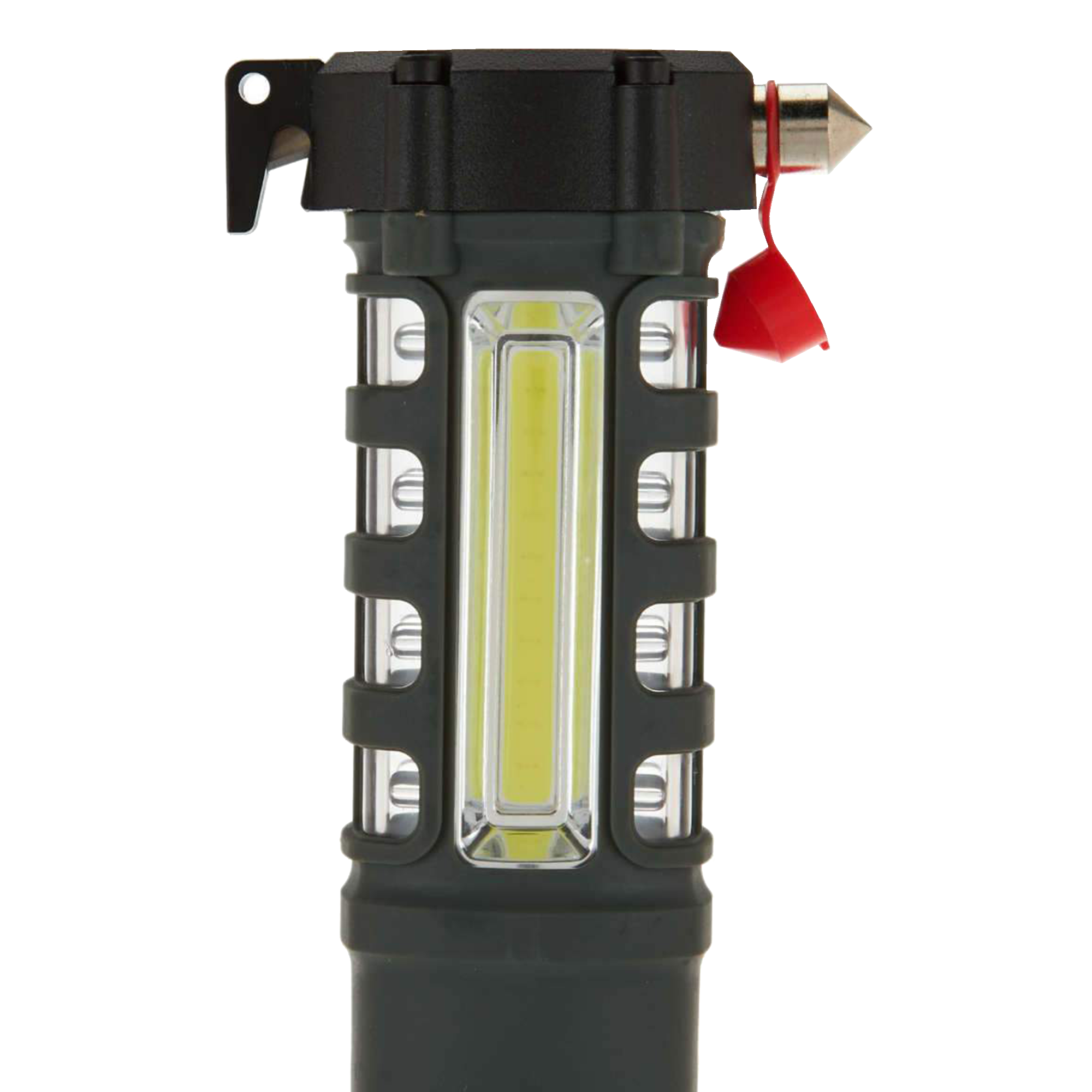 Specs ====- Model: FL3022- Condition: New- 5-in-1 window hammer, seatbelt cutter, area light, flash light, emergency light- 3 modes: Work light, Flashlight, Emergency Red flasher- Magnetic Base- Includes a USB charging cable and DC Car adapter- Dimensions: 8.5" L x 3.4" W x 1.5" D- Brightness: 2W COB 170 Lumen / 1W SMD 70 Lumens- Run time: 2W COB: 4Hours / 1W SMD LED: 2 Hours- Charging time: 5-6 Hours- Battery: 3.7V 2000mAh Li-ion- Waterproof Rating: IP44What’s in the Box? ====2x 5-in-1 Emergency Tool2x USB charging cable2x DC Car adapterVideo====A Helpful Silent MoviePictures====OptionsColorsIncludedBlueRedBlackGreenTopArea lightRed lightThe backMagnetsPrice Comparison ====$79.90 (for 2) at Amazon