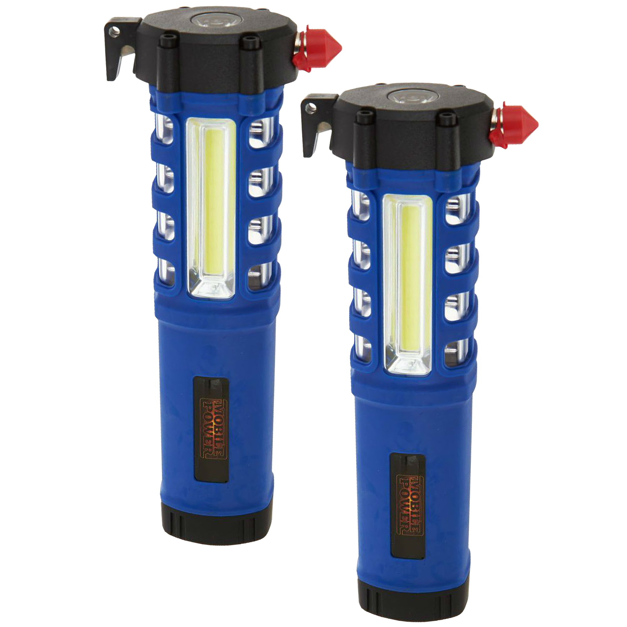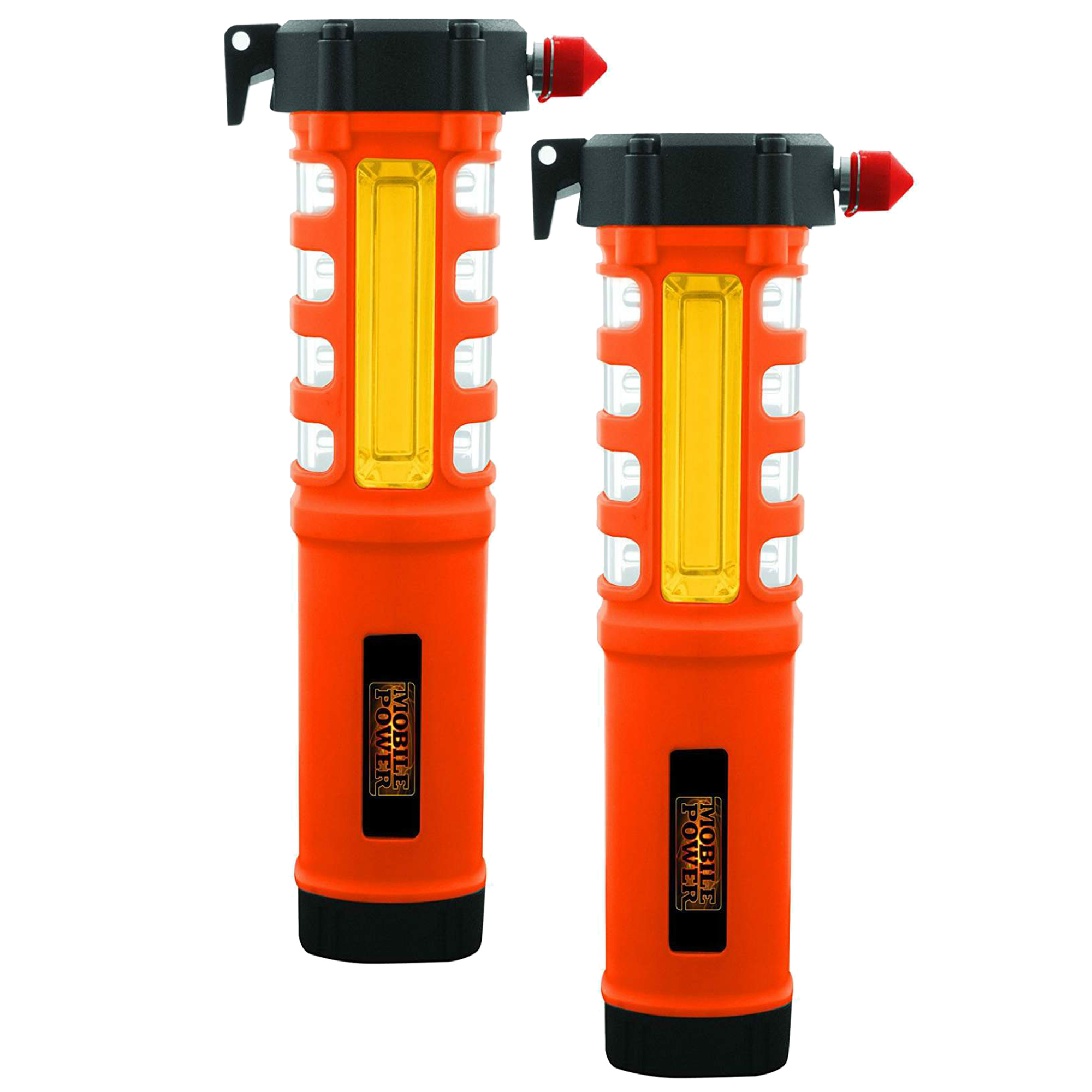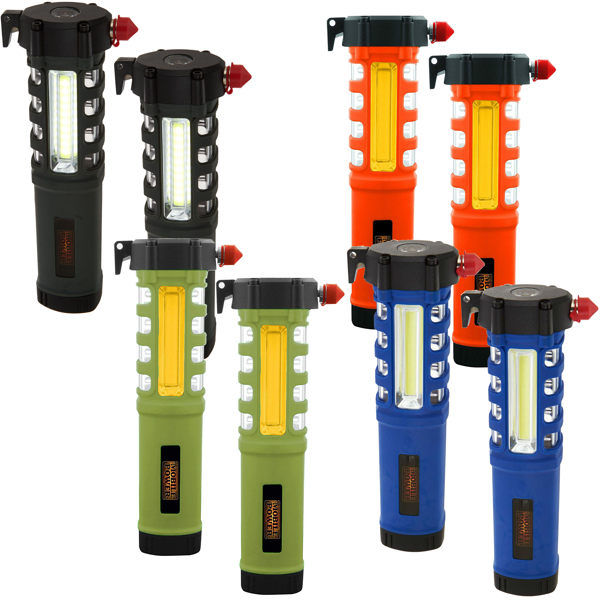 - Pick one green, black, blue or orange tool, and then pick a second green, black, blue or orange tool to make your two-pack- Get out of your car and into your dreams with this 2-pack of vehicular emergency tools- (Hopefully you won’t need to) use the seatbelt cutter, glass hammer, and 3-way light - Keep one for your own emergencies and give one to a hapless person you know who might experience one- Switch between a work light, flashlight, and emergency flasher depending on your level of competence in an emergency- Don’t worry about getting them wet (they’re waterproof); worry about the vehicular emergency you’ve found yourself in- And don’t worry about the battery – they can last 4-10 hours on a charge and come with USB and AC/DC cables (i.e. a USB cigarette adaptor thingie)- The specs are oddlyspecific for the LEDs. So if it’s of use to you, know that one of these is a 2W COB LED, and another one’s a 1W SMD LED, and then there’s those 16 red emergency flashing LEDs, but we don’t apparently get to know if they are COB or SMD or if that is relevant or if there’s something else or exactly why we’re supposed to care- Model: FL3022 (When you’re upside down on the side of the highway you don’t want to spend extra mental energy trying to remember the model number of your 5-in-1 emergency tool.)