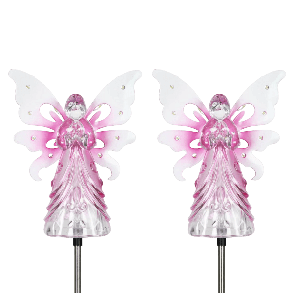 2-Pack: Exhart Solar Metal and Acrylic Angel with 12 LED Wings Garden Stake