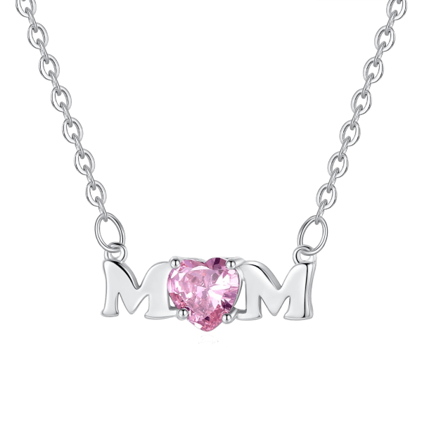 Hollywood Sensation 18K White Gold Plated Pink Heart Mom Pendant Necklace