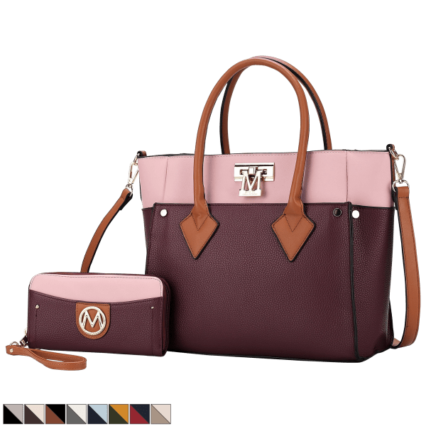 MKF Collection Brynlee Color-Block Vegan Leather Tote Bag & Wallet Set by Mia K.