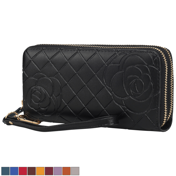 MKF Collection Honey Genuine Leather Flower-Embossed Quilted Wristlet by Mia K