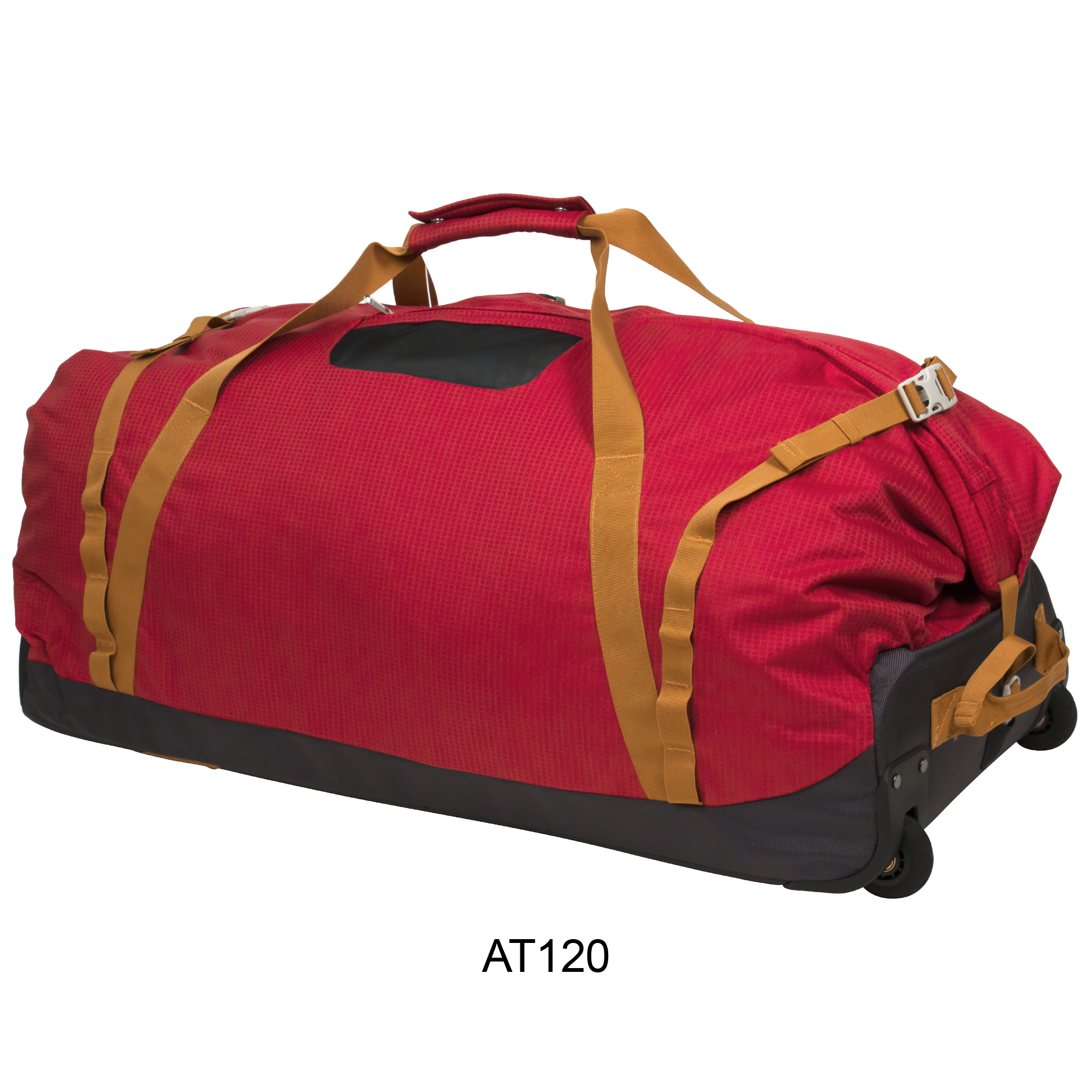 Specs ====- Model: 22110309, 22120309- Condition: New - Zippered main compartment and zippered side pocket - Padded adjustable shoulder strap and padded top and side haul handles - Comfortable, adjustable and detachable backpack straps- Nylon webbing compression straps - Webbing loops for attachments and tie down points - Zippered luggage ID pocket - Map print liner - Outer material: 420D Nylon square dobby, PU1000mm / 1680D ballistic Polyester, PU1000mm - Lining material: 200D Polyester - AT120: - Dimensions: 33.9 x 15.7 x 12.6 in - Weight: 6 lbs 13 oz - Volume: 120L / 7322 cubic in - Handle drop height: 4.3 in - Built-in wheels for easy transport- AT80: - Dimensions: 26.8 x 15.7 x 11.8 in - Weight: 3lbs 7.2 oz - Volume: 80L / 4882 cubic in - Shoulder Strap length: 65.4 in What’s in the Box? ====1x Duffel bagPictures====BagsAT80AT80 againAT120AT120 standing upAT120 againThese zippers are cool as hell yeah?Look at this clip. It’s kinda neatZoom through the airport at decent-ish speedsThis is like a mattress or some CIA shit I don’t really know why this picture is hereCan’t stabPrice Comparison====AT80: $113.01 at AmazonAT120: $139.99 at Amazon