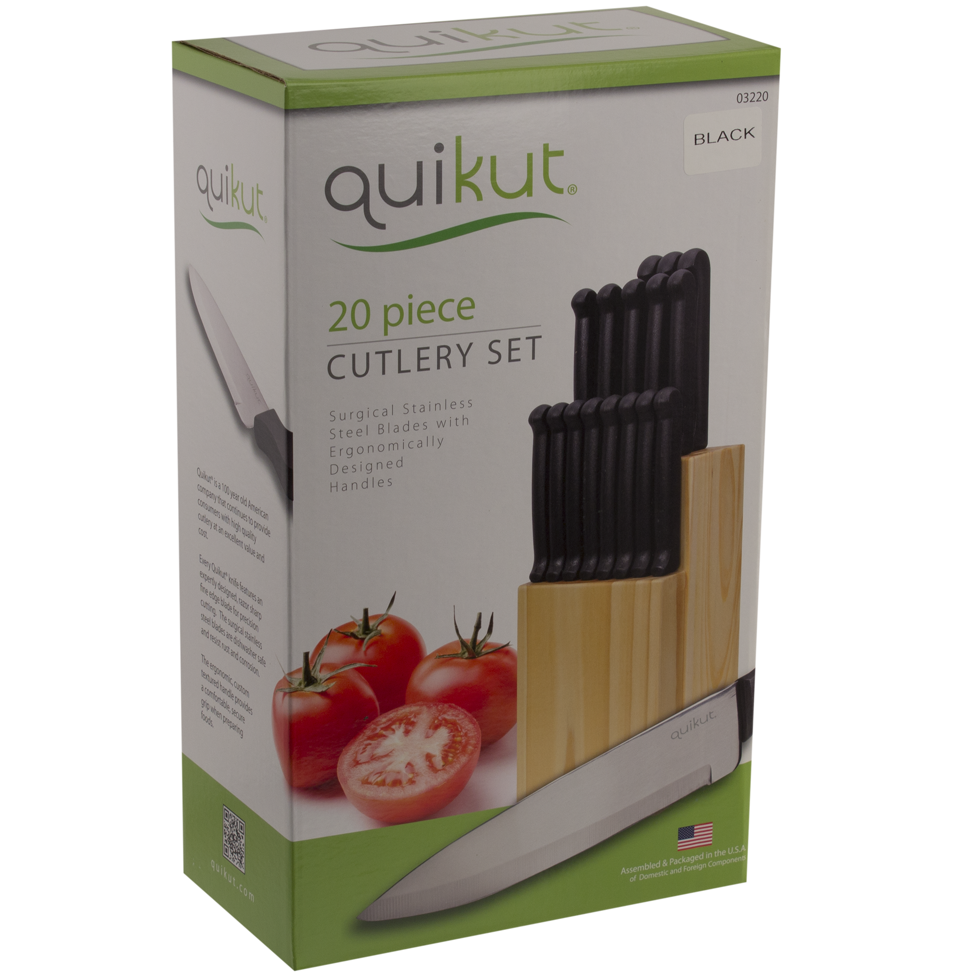 “Quikut” is presumably a portmanteau of “quick” and “cut” though neither word is spelled correctly. And we’re not sure what would make one knife kut quiker than another. Do Quikuts kut quiker than Ginsus?