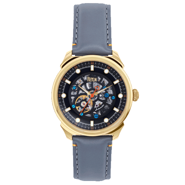 Reign Men's Weston Skeletonized Leather-Band Watch