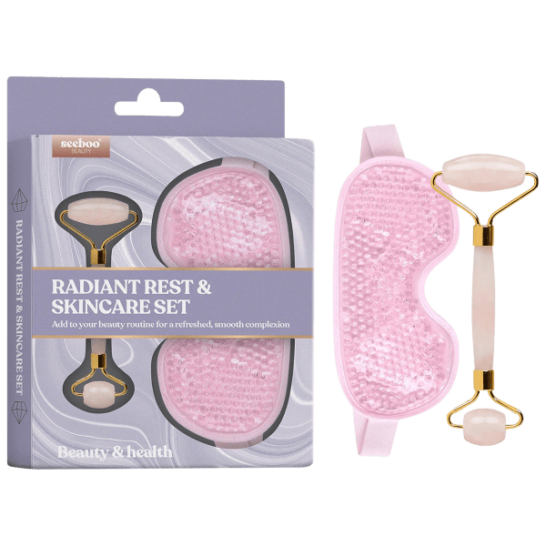 Seeboo 2-Piece Cooling Beads Eye Mask & Rose Quartz Facial Roller Skincare Set