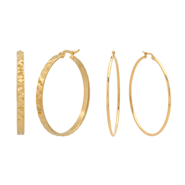 Steeltime Set of 2 Hammered & Thin Hoop Earrings