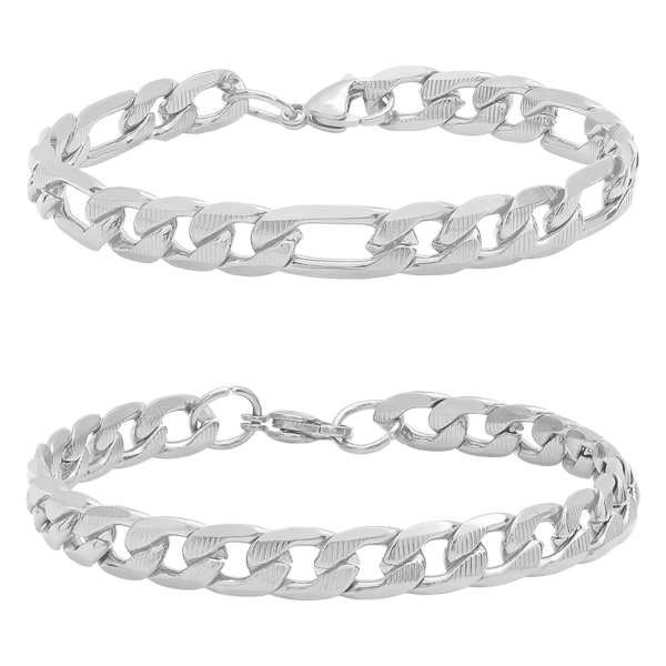 Steeltime Set of 2 Men's Accented Figaro & Cuban Link Bracelets