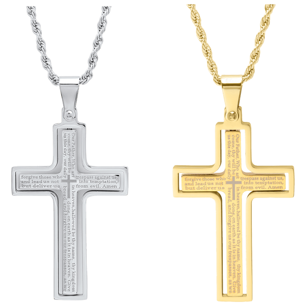 Steeltime Set of 2 Men's "Our Father" Prayer Spinner Cross Pendants