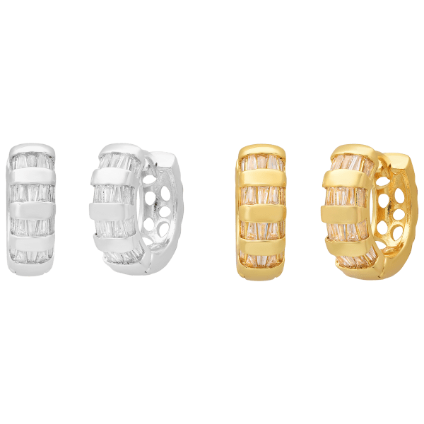 Steeltime Tapered Baguette Simulated Diamond Brass Huggie Hoop Earrings Set