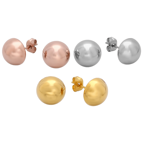 3-Pack: Steeltime Assorted 18k Gold Plated Ball Stud Earrings