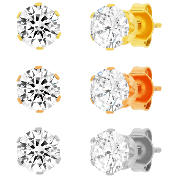 3-Pack: Steeltime Assorted Round Simulated Diamond Stud Earrings