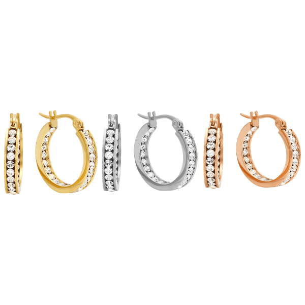 Steeltime Set of 3 Assorted Simulated Diamond Hoop Earrings