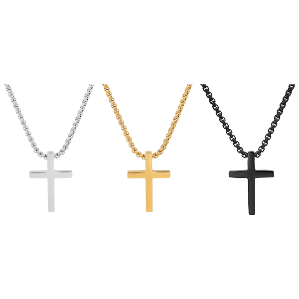 Steeltime Set of 3 Men's Assorted Polished Cross Pendants