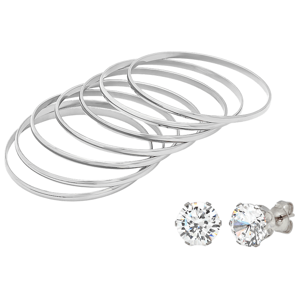 Steeltime Set of 7 Bangles with Simulated Diamond Earrings