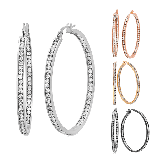 Steeltime Women's Stainless Steel In-And-Out Simulated Diamond Hoop Earrings