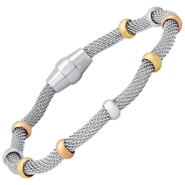 Steeltime Women's Tri-Tone Stainless Steel Mesh Beaded Bracelet