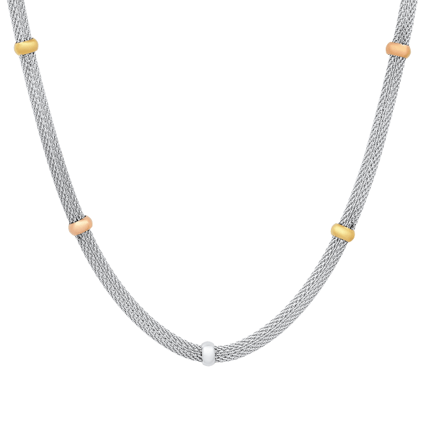Steeltime Women's Tri-Tone Stainless Steel Mesh Beaded Necklace