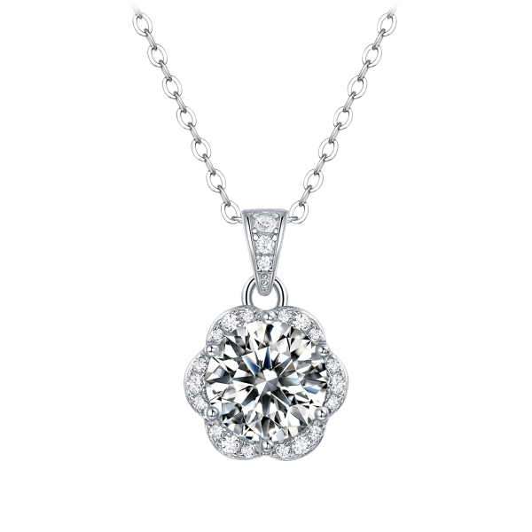 Stella Valentino 2.0 Carat TW Moissanite Cluster Halo Flower Pendant Necklace
